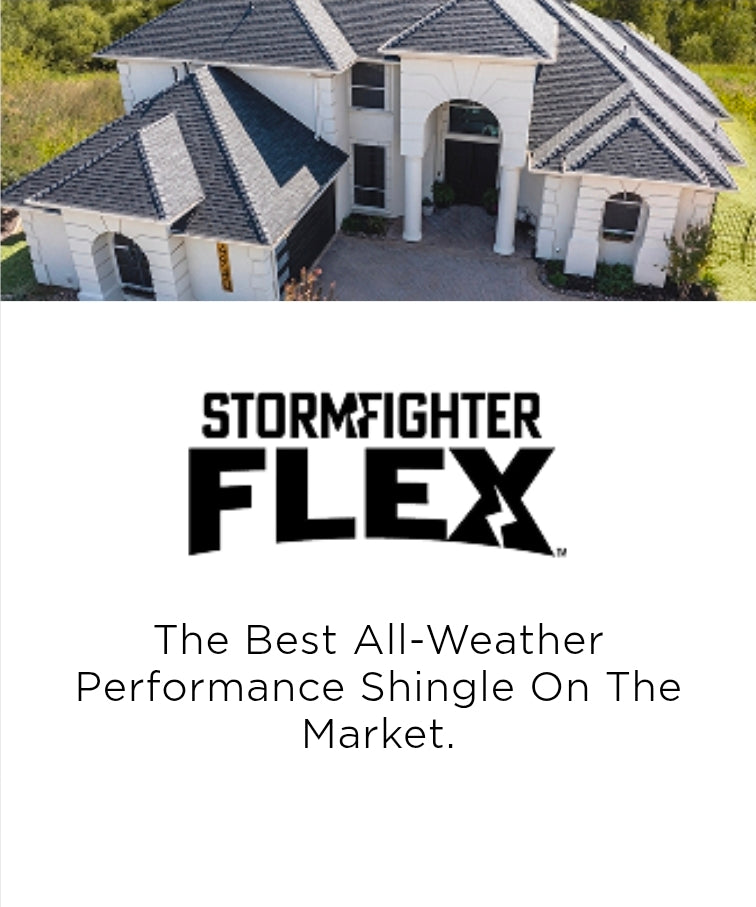 Designed for extreme flexibility and cold-weather installation, StormFighter FLEX shingles use a polymer-modified asphalt for industry-leading impact resistance and elasticity. Ideal for harsh climates and premium installations.